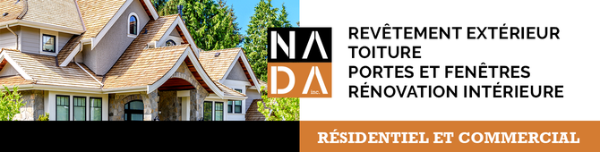 Depuis 2012, l’entreprise Rénovation Nada œuvre dans le domaine de la rénovation résidentielle et commerciale. Desservant un territoire s’étendant des municipalités de La Doré jusqu’à Desbiens, elle offre des services de remplacement de revêtements extérieurs, de toitures, de portes et fenêtres, de finition intérieure et extérieure, de construction de patios, de terrasses et balcons, de fabrications en aluminium en plus de déneigement de toitures. Que vos projets aient été inspirés par une image quelconque ou simplement par votre imagination, nous vous garantissons un produit fini de qualité supérieure et correspondant fidèlement à vos attentes. Contactez-nous pour une soumission gratuite.